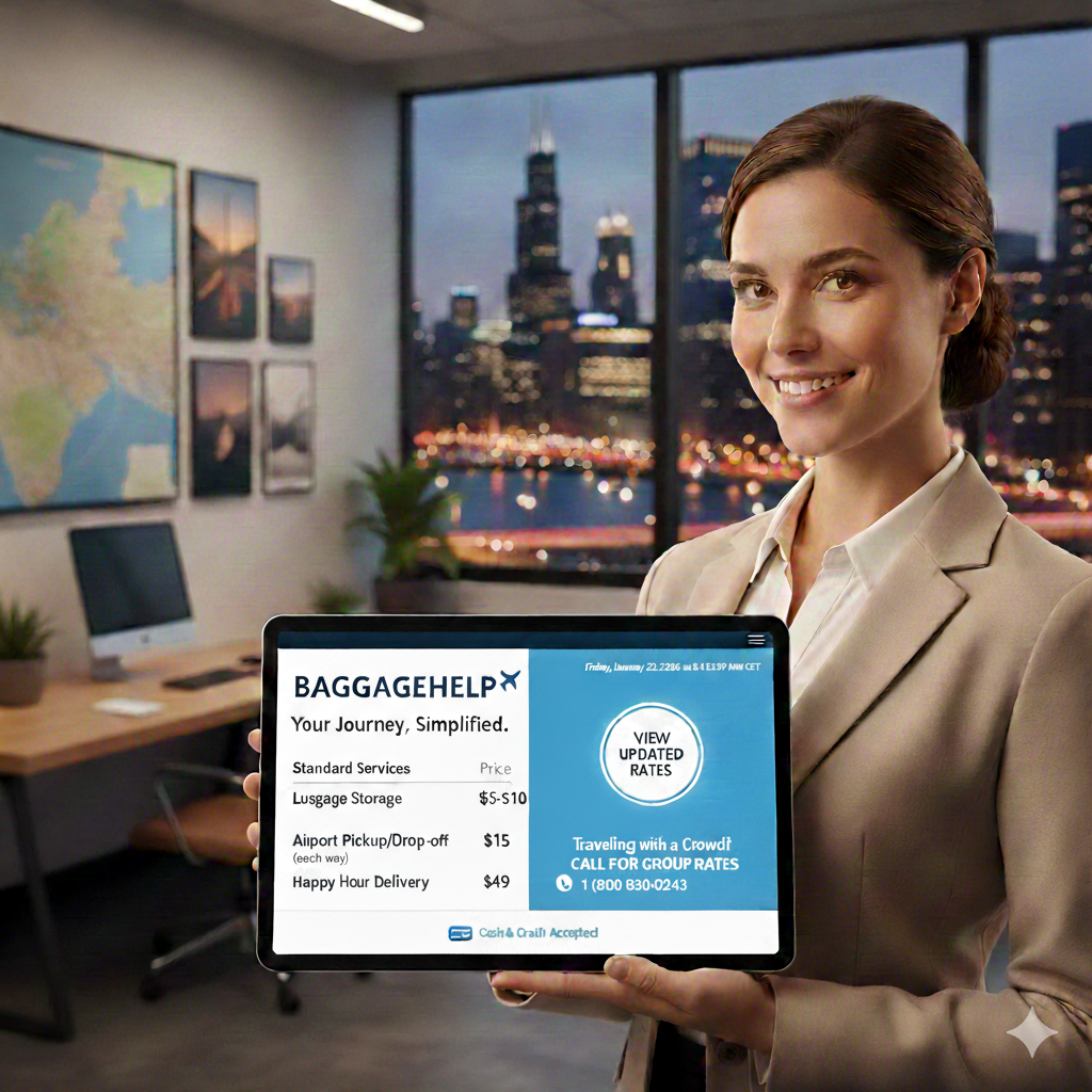 Thank you for choosing BaggageHelp! We have officially updated our price list for all luggage handling and storage services to better serve your travel needs. Click the link below to see how we can simplify your next trip and keep you hands-free. We continue to accept both cash and credit for your convenience. Traveling with a crowd? Please call us directly for specialized pricing on group requests! Check out the updated rates now